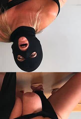 Sexy blonde in black lingerie in toy masturbation