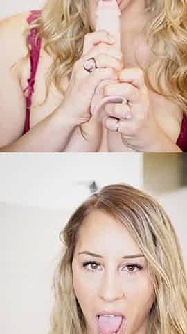 Mature blonde Aleya Sun with massive tits plays solo and gets frisky in front of the door in VR