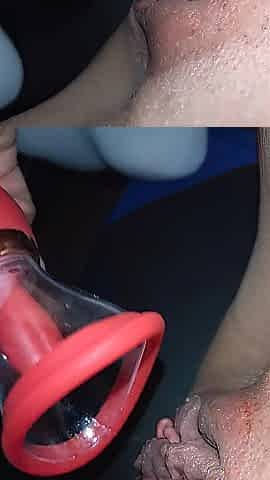 He fucks my giant pussy after I inflate it until it bursts