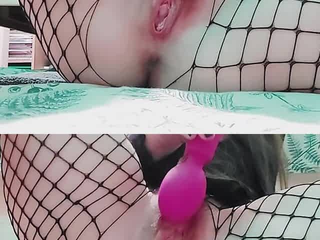 Lengthy episode of a doxy eating fluid, shooting cum and plugging herself with a mega sextoy. #1