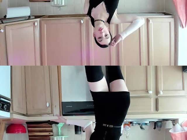 Licking her own feet on webcam