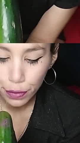 Argentine Masturbates with a Giant Cucumber up Her Ass