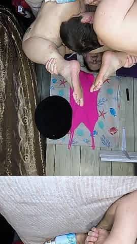 The serf cums on Danaxmuscles' feet