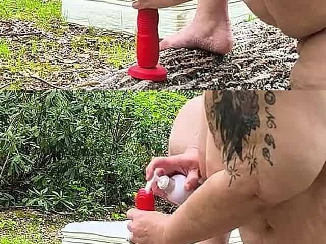 Treedildo Hopping Has Her Pussy Squirt Slopping