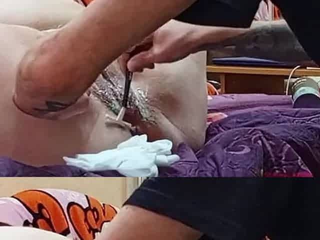 Shaved His Wife's Meaty Pussy Then Did a Fisting Before Squirting