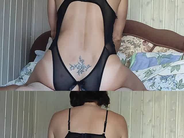 Joyce Mifle wearing black stockings enjoys while riding a dick