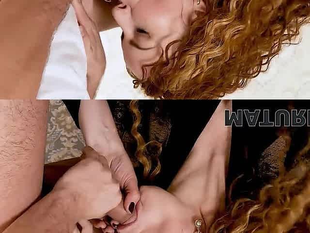 Passionate Dance of the Red-haired Goddess: Mature Woman in a Transparent Lace Dress and Blue Bodysuit Reveals Her Sexuality in