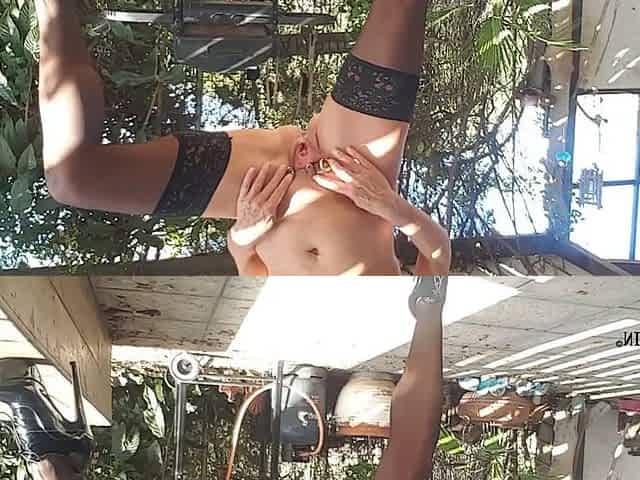 Outside Peeing - High Heels Stockings - Pierced Tits Big Labia & Nipple Rings