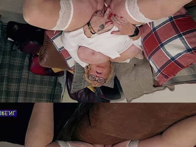 Hot mature Gina in sexy lingerie and stockings, enjoying intimate moments