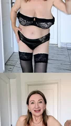 Natural German Housewife Fucks In Her Black Nylon Lingerie