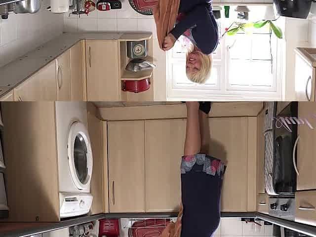 Housewife Amy Teases & Plays for You in the Kitchen in Stockings & Lingerie