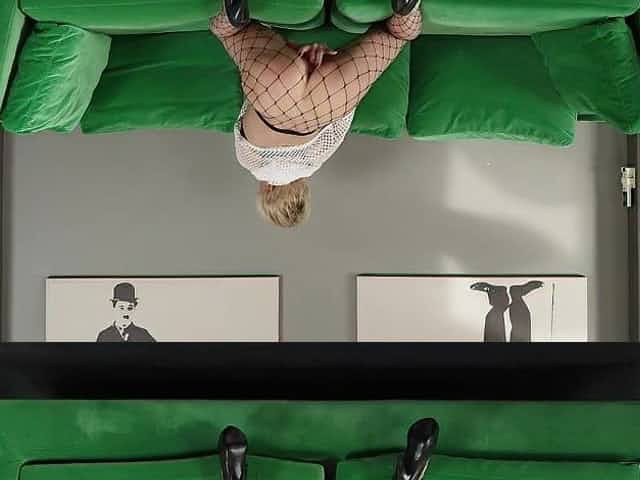 Kinky mature Ayda spreads her legs and pussy lips on the sofa