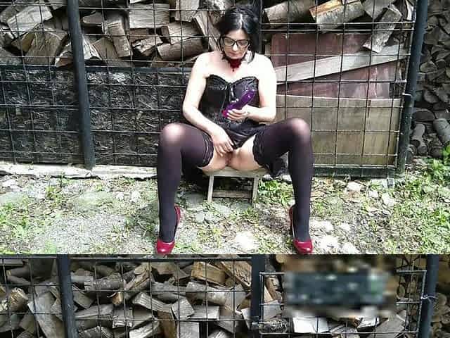 Stepmom Is Stretching Her Tight Little Cunt Outdoor in Sexi Lingeri 1