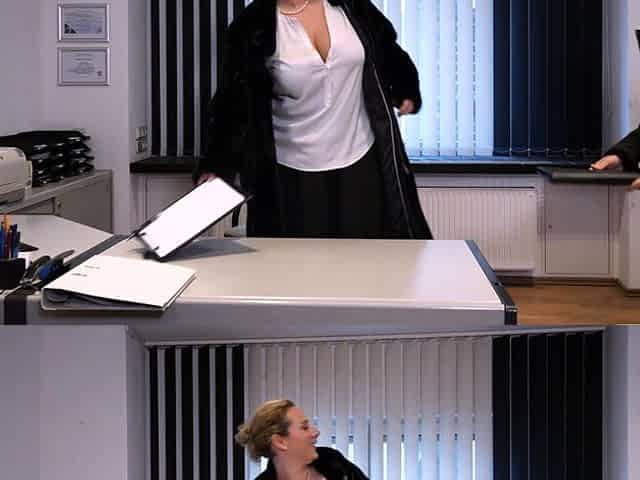 Mature babe gets rammed on the desk