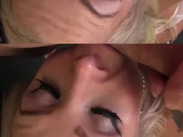 Older golden-haired skank gets her hairless cunt plowed by chap