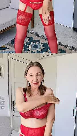 Mrs Mature Feet in Red Bra and Kinky Panties