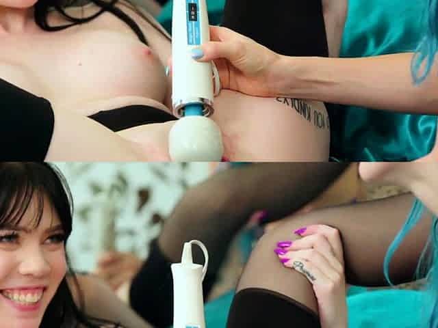 Naughty girlfriends in fishnets have fun pleasuring each other