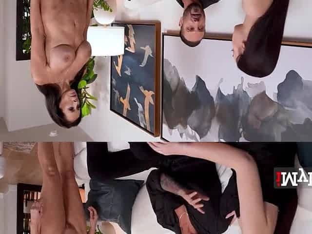 Beautiful Brunette Big Boobs Rides Fake Cock