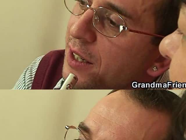 The old woman gives herself to be drilled by 2 youthful gracious chaps