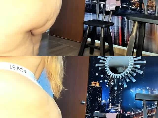 Milf Mia strips for her stepson at hotel. Takes panties off her shaved pussy part 2