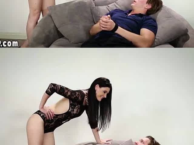 Mother-in-law trains her stepdaughter's boyfriend how to internal cumshot her bum and over her shoes