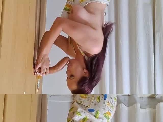 Caught wife fucking herself with BBC dildo