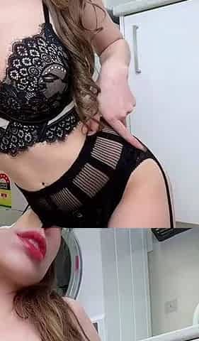 Mature wife Camille Johnson in stockings and lingerie having some fun