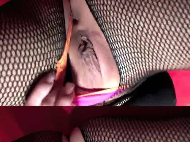 Mature Japanese Wife in Pantyhose Rubbing Cock on Her Hairy Pussy
