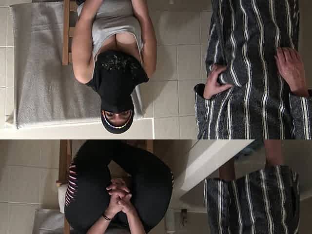 Step-son watches in the kitchen. He catches his step-moms huge ass by surprise with his big cock