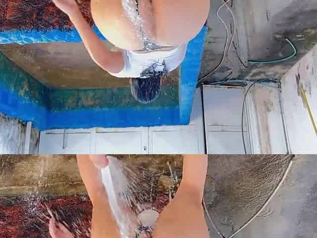 MY STEPMOTHER BATHING IN THE PATIO IN A BIKINI WITH HER UNBELIEVABLE BOOTY