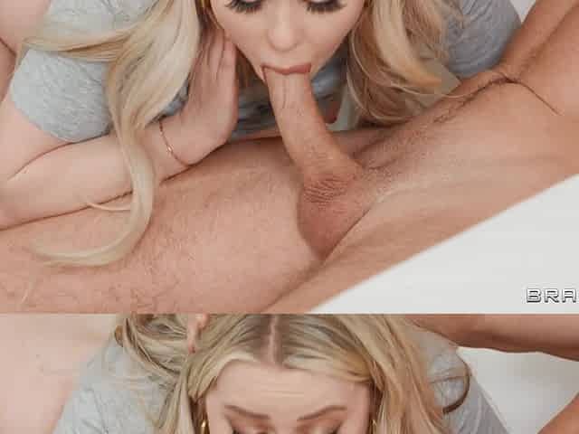 Blonde bombshell Haley Spades gives a sloppy blowjob and gets a messy facial