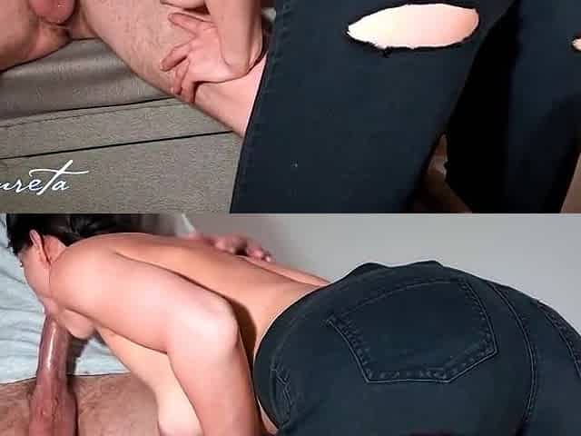 Lanreta - Cutie In Old Black Ripped Jeans Squirts And Fucks - Messy Cumshot