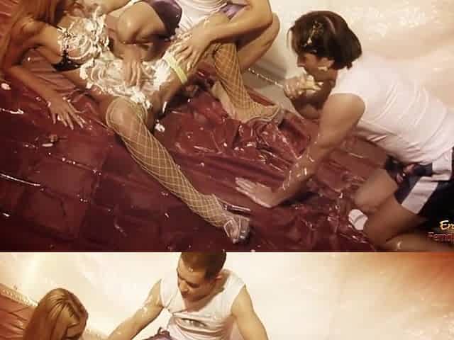 Cindy Behr gets covered in sticky pudding while getting fucked well by her man Jamie Barry