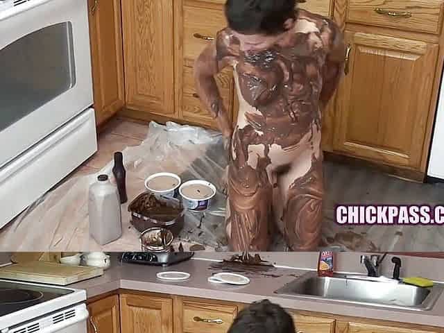 Shelly covers her body with chocolate