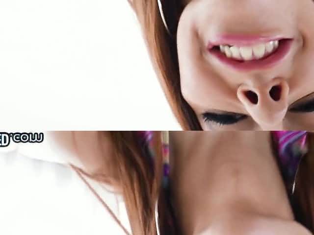 Messy cum in mouth for a cute Japanese chick after sucking a dick