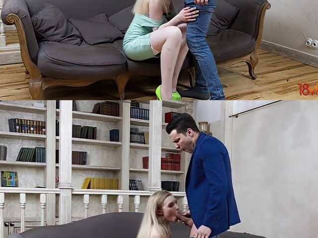 Blond Hair Lady Gives Sloppy Blowing Off And Takes Messy Facial! - Young Cutie