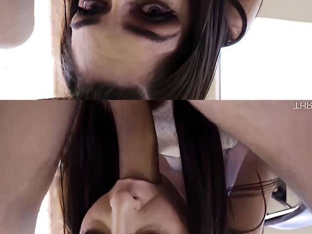 Raven haired bitch fucked doggystyle and swallows cum
