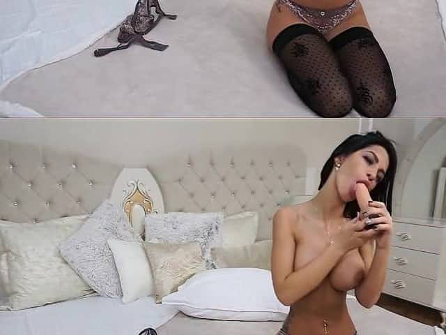 Lingerie suck n fuck, big white ass messy cumshot