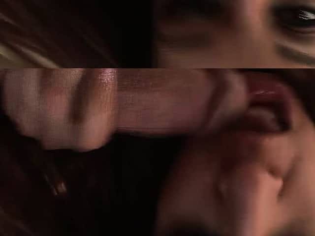 Brunette sucks a stiff cock in POV & gets a messy facial