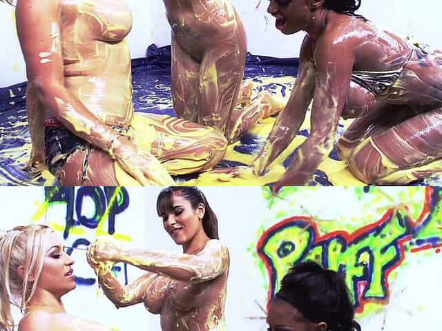 Sexy body painting and pussy drilling with Tara Ashley and Bambino
