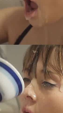 Febby Twigs and Kay Carter share a messy, hot load through a gloryhole.