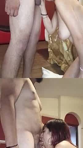 Cute College Girl Have a Threesome Blowjob with Her Dildo and Her Boy