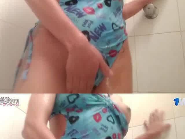 Naughty college girl strokes in public restroom while hot gal enjoys in water park - EsdeathPorn