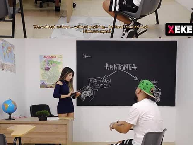 Amoral teacher gives anatomy lessons with her body to her student with a thick penis.