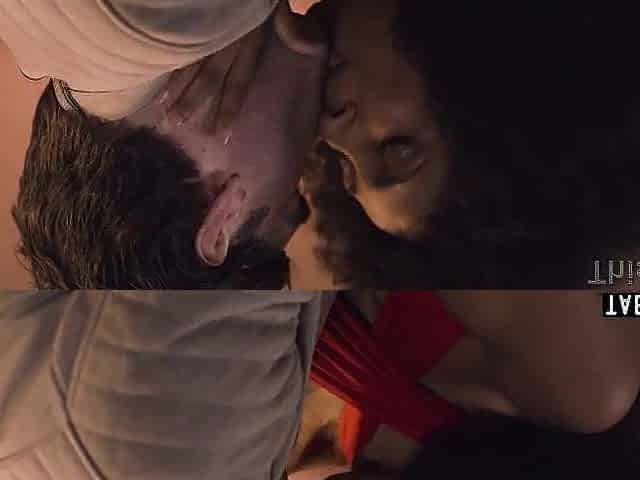 Amorous Clara G and Cindy Hope at kissing scene