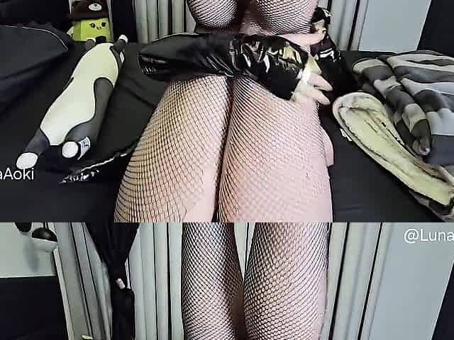 tracey lain pink suit nylons and heels, arse and cunt widening, toy insertion