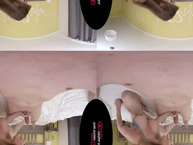 Busty Francys Belle slides her shaved pussy on the hard rod in POV