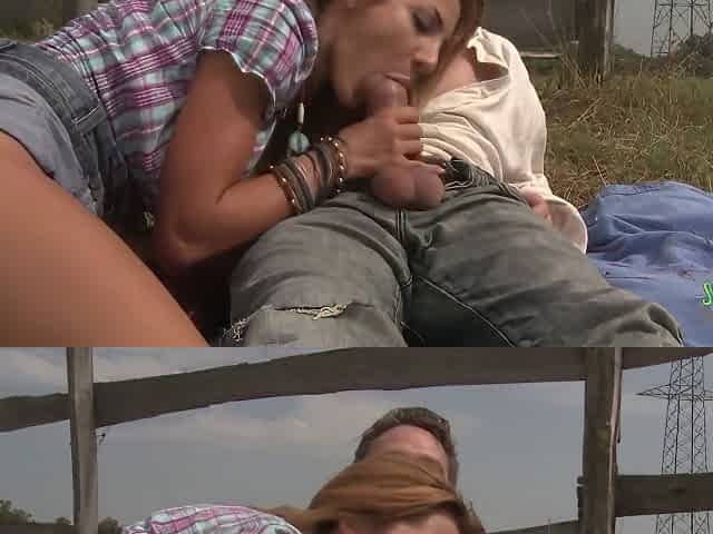 The Field Outdoor The Brunette Milf With Big Boobs Spreads Her Cheeks For Ass Eating And Anal