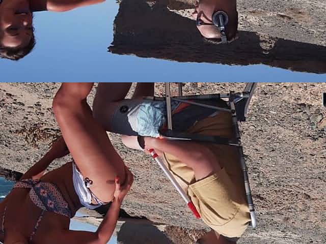Perverted couple is having crazy sex on the beach in front of blind man