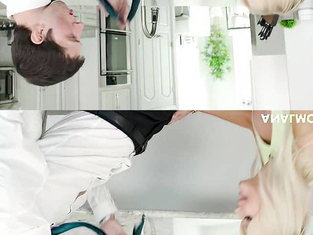 Nice tits and ass cougar Brittany Bardot fucked in the kitchen